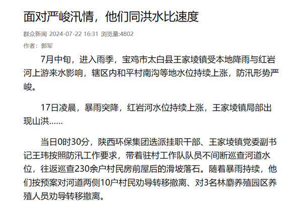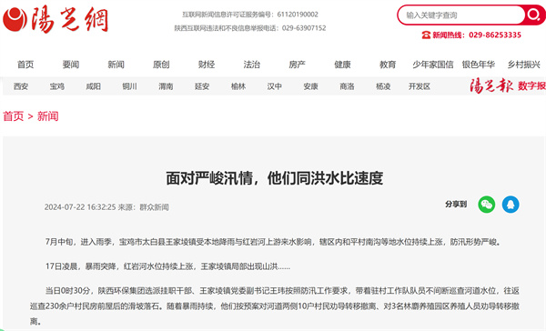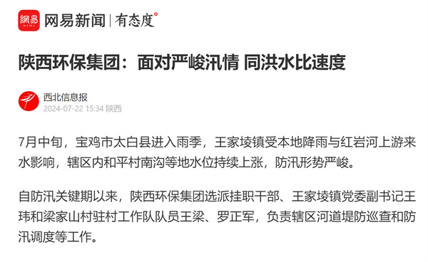 學(xué)習(xí)強(qiáng)國(guó) 群眾新聞網(wǎng)等主流媒體聚焦陜西環(huán)保集團(tuán)職工服務(wù)防汛抗洪等工作情況