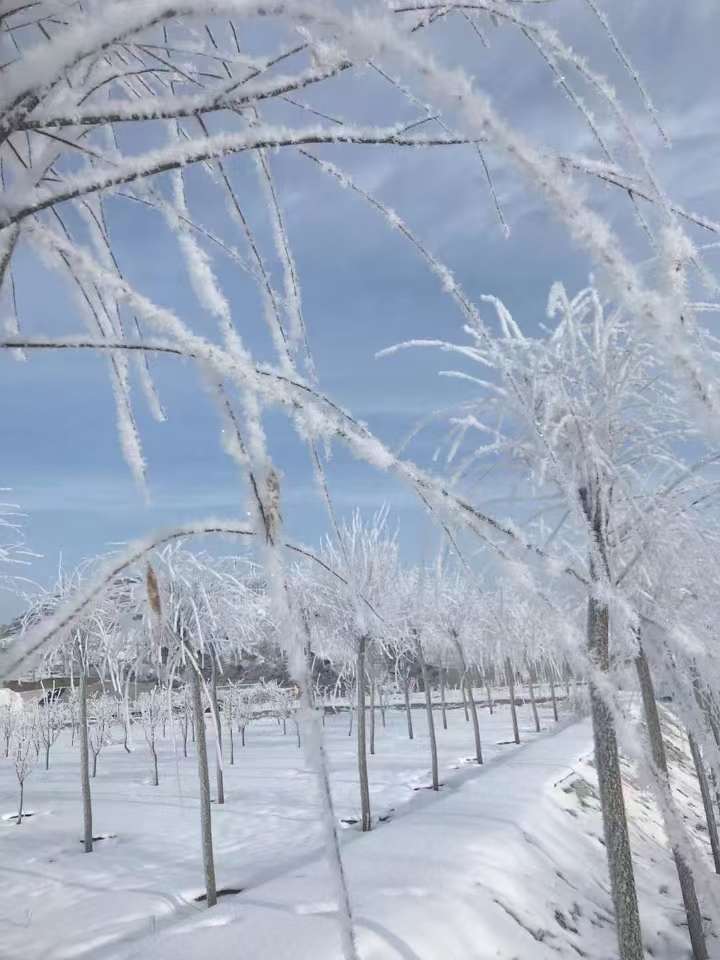 那些曾經(jīng)荒蕪且錯綜復雜的溝壑,在這五年的治理下,變成了宛如梯田的綠洲。栽種下的一排排柳樹與杏樹在四季的更迭中,已經(jīng)悄然成長。春天,柳樹萌發(fā)新芽,杏花競相開放,為原本單調(diào)的工作環(huán)境注入了生機與活力;夏天,杏果掛滿枝頭,垂柳輕拂,為這片土地帶來了勃勃生機;秋天,金風送爽,層林盡染,將場區(qū)裝扮得分外妖嬈,仿佛一幅精心繪制的秋日畫卷,讓人心曠神怡;冬日,銀裝素裹,白雪皚皚,雖寒風凜冽,卻也展現(xiàn)出一種別樣的靜謐與壯美。這片被治理后的梯田綠洲,彰顯了企業(yè)“環(huán)保為民、產(chǎn)業(yè)報國”的宗旨。